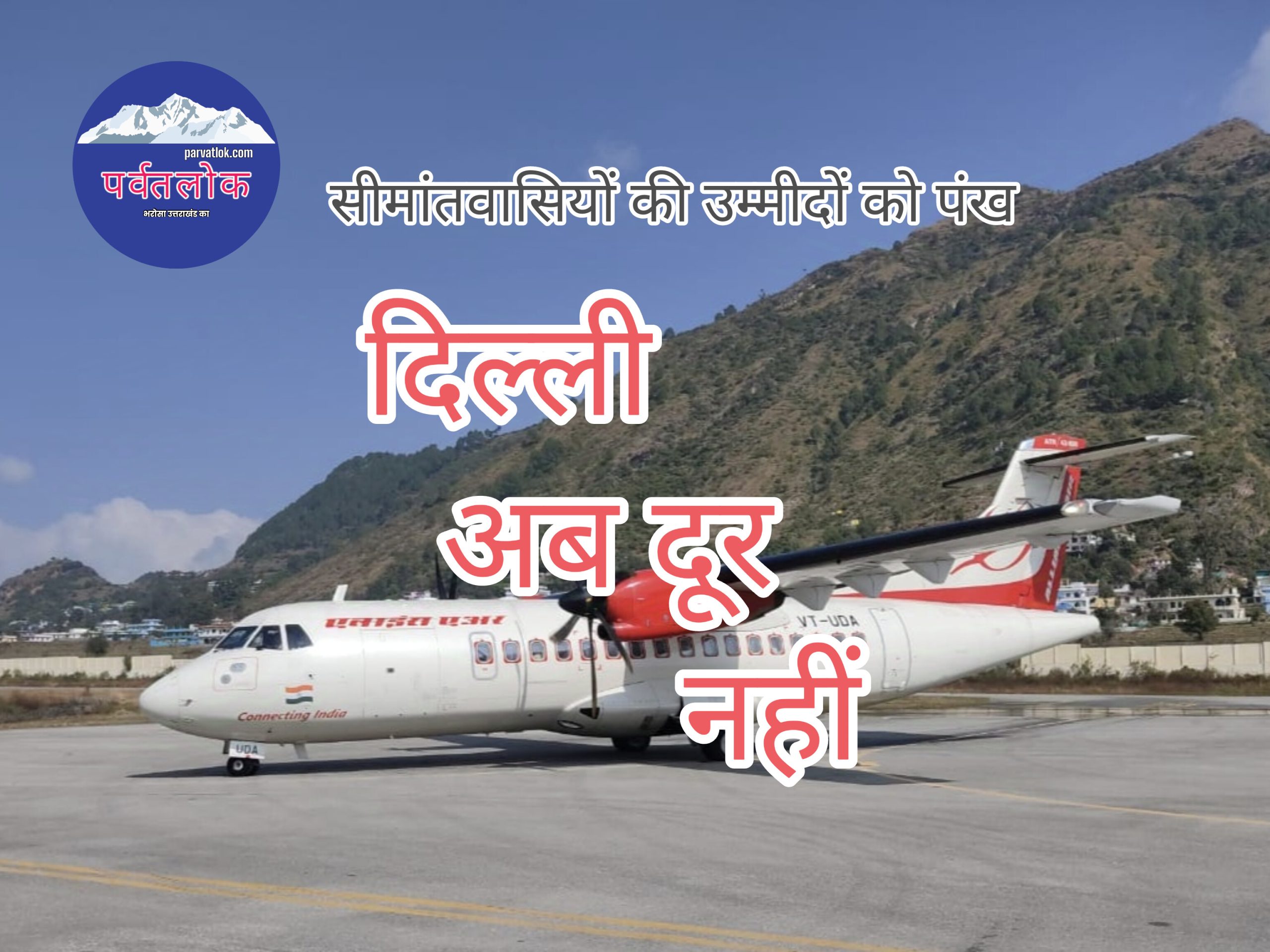सीमांत पिथौरागढ़ से देश की राजधानी दिल्ली के बीच हवाई सेवा शुरू हो गई है। सीमांतवासियों को लंबे समय से इसका इंतजार था। गुरुवार सात नवंबर को अलायंस एयर लाइन का 42 सीटर विमान पिथौरागढ़ पहुंचा। पूर्वाह्न 11:28 बजे जब विमान नैनी सैनी एयरपोर्ट पर उतरा मानो सीमांत के लोगों की उम्मीद को पंख लग गए। पहली उड़ान में 21 यात्रियों को लेकर नैनी सैनी एयरपोर्ट पहुंचा। पानी की बौछार के साथ विमान का स्वागत किया गया। बाद में केंद्रीय परिवहन राज्य मंत्री अजय टम्टा ने यात्रियों का स्वागत किया। यात्रियों ने अपना अनुभव साझा करते हुए कहा कि दिल्ली के लिए विमान सेवा शुरू होना सीमांत के लोगों के लिए बड़ी उपलब्धि है। सेवा शुरू होने से देश-विदेश के लिए आवाजाही करना सुगम होगा। साथ ही यह विमान सेवा पर्यटन गतिविधियां बढ़ाने में भी मददगार साबित होगी।